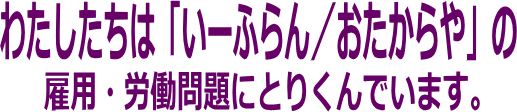| 労働相談(労働環境・労働条件)は 03-5357-1430 info@tmujapan.com ● ● ● ● ● 東京統一管理職ユニオン ● ● ● ● ● いーふらん雇用問題対策 班 |